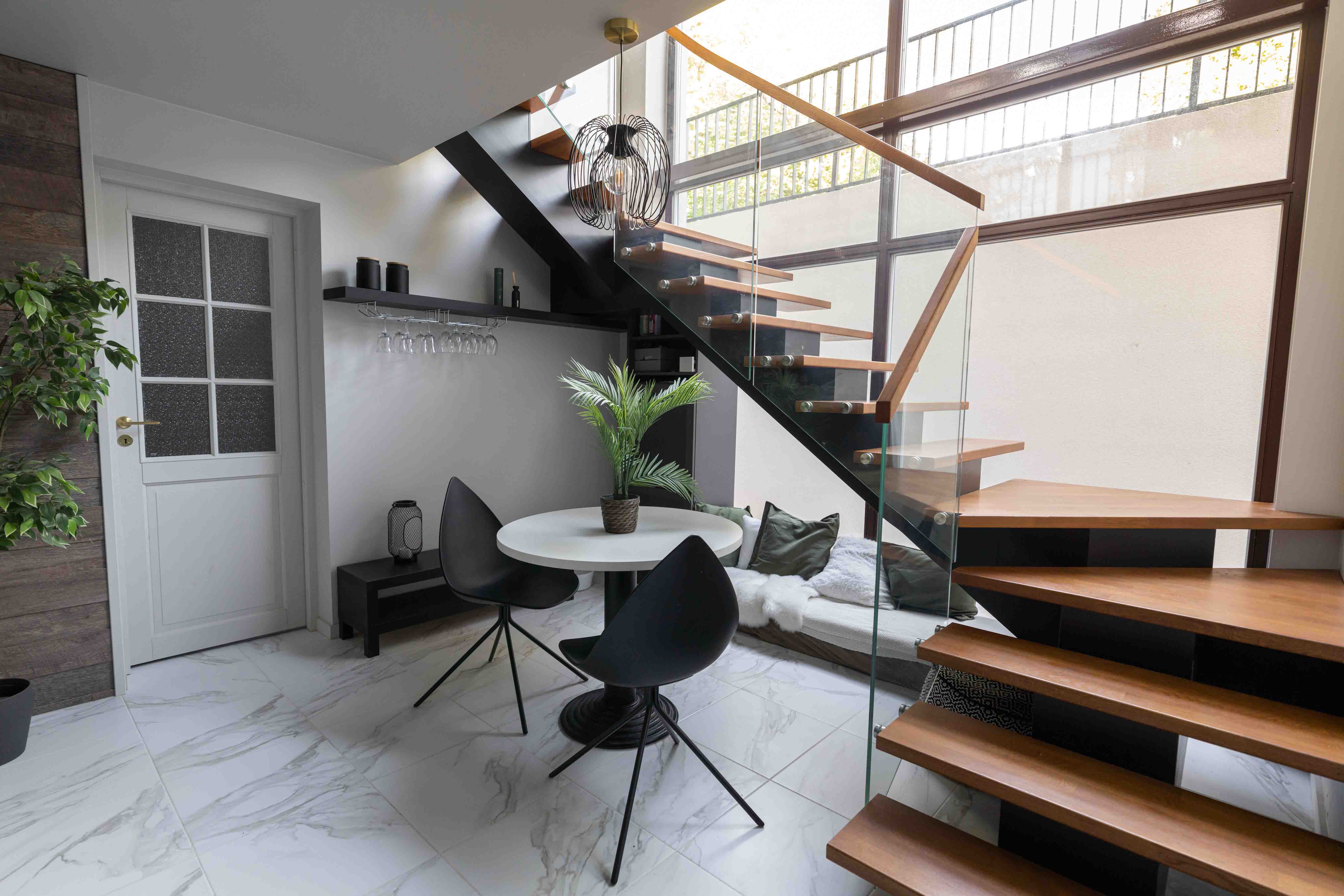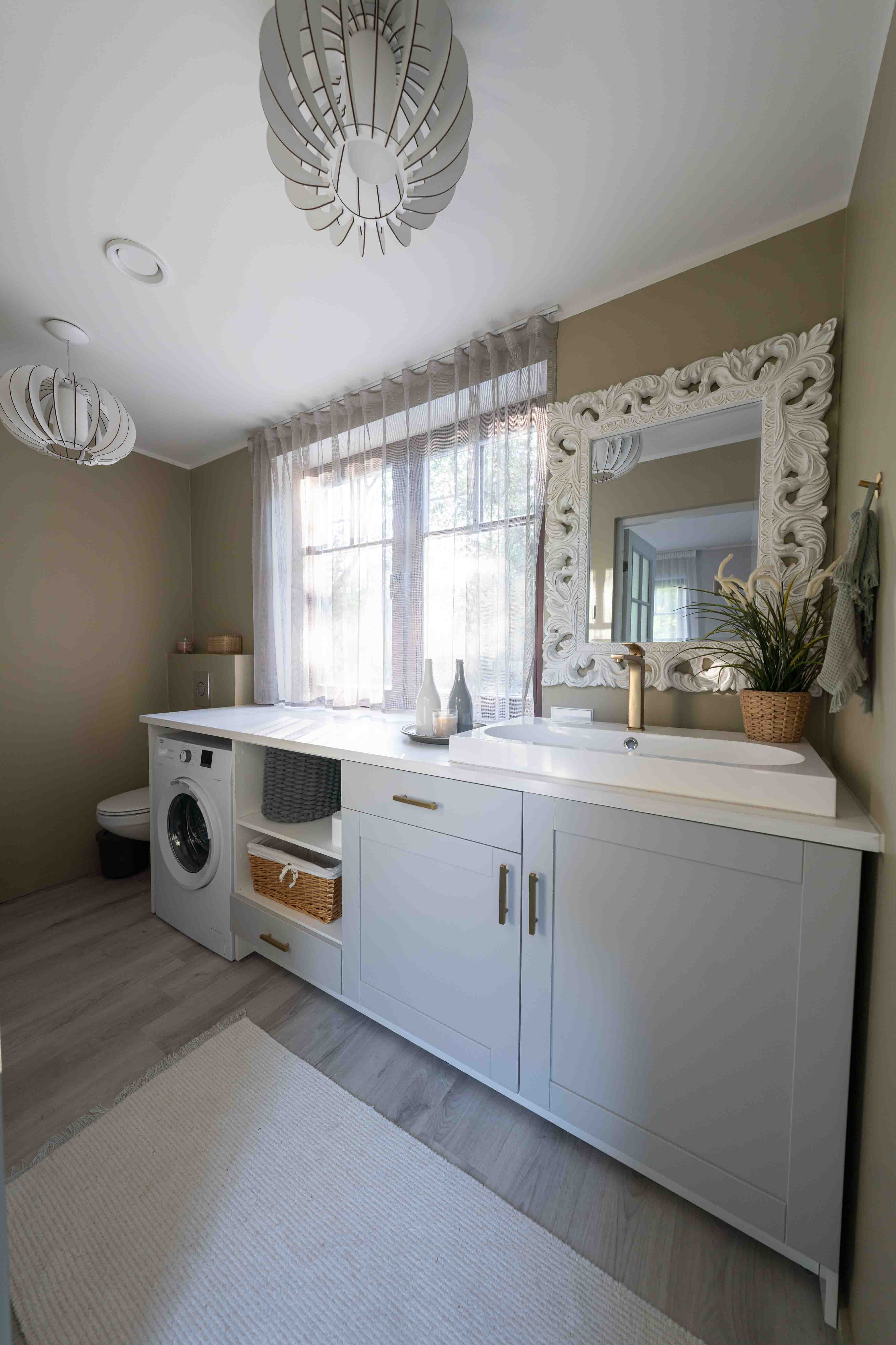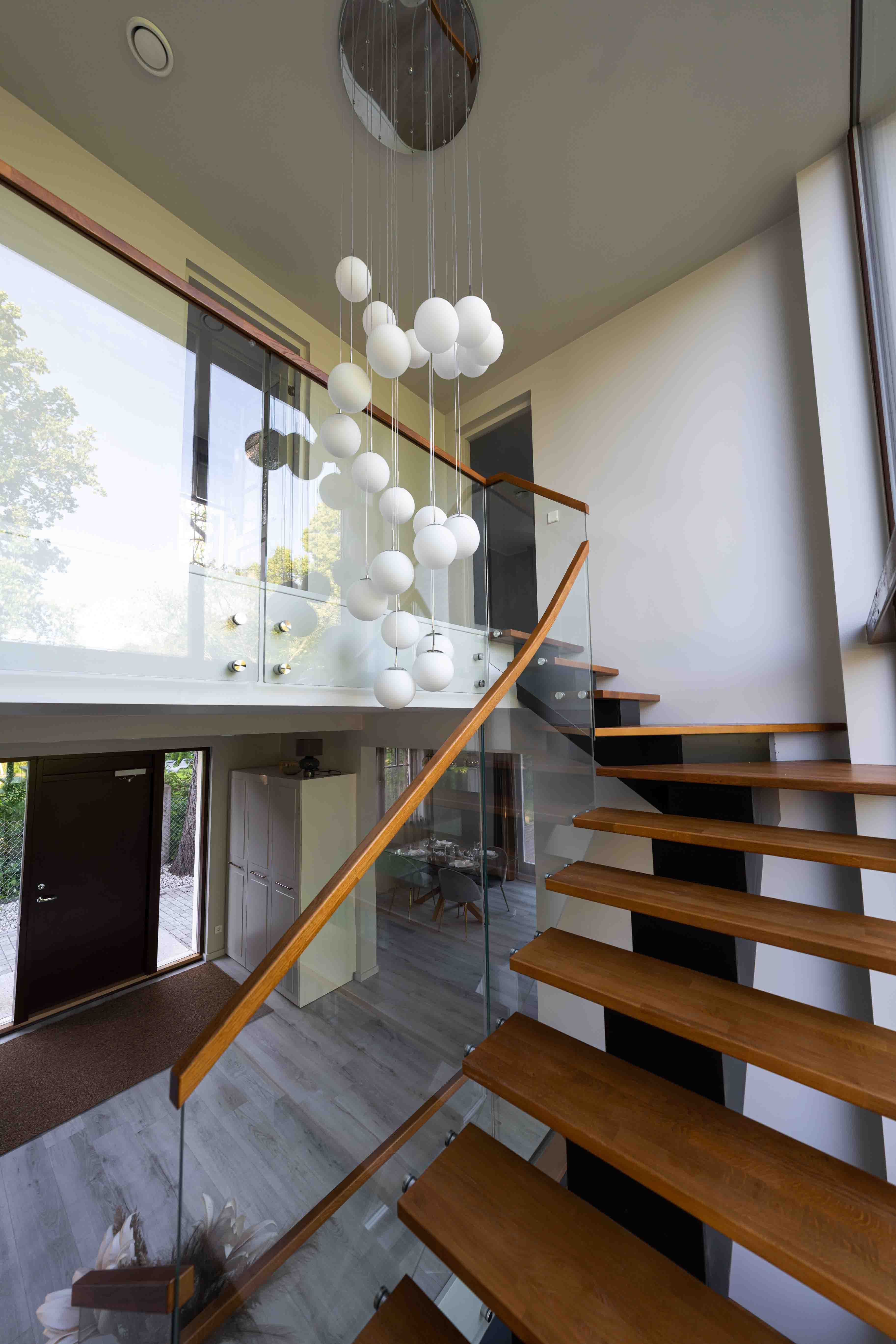 Uusehitise täislahenduses (nii ehitusprojektis kui ka sisekujunduses) lähtusime modernsest minimalistlikust disainist, kus iga ruum ja element on hoolikalt läbimõeldud ning fookuses on hubasuse ja funktsionaalsuse tasakaal. Soe puit, värske luksus ja must metall loovad trendika koosluse, mis rõhutab kontrasti ja karakterit. Maja on kompaktne, kuid tänu suurtele akendele, avatud trepile ja läbimõeldud ruumikasutusele avarust ülistav. Sisekujunduses tõstsime esile valguse ja ruumi kooskõla – modernsuse, luksuse ja harmoonia, kus valgus saab vabalt liikuda ning neutraalsed toonid toovad esile rahu ja tasakaalu. Maja sisekujundus järgib modernse minimalismi ja industriaalse luksuse põhimõtteid: avatus, funktsionaalsus, kontrastid ning looduslike materjalide tasakaal. Meeleolu on rahulik, puhas ja inspiratsiooni loov, sobides hästi tänapäevasesse linnakodusse.